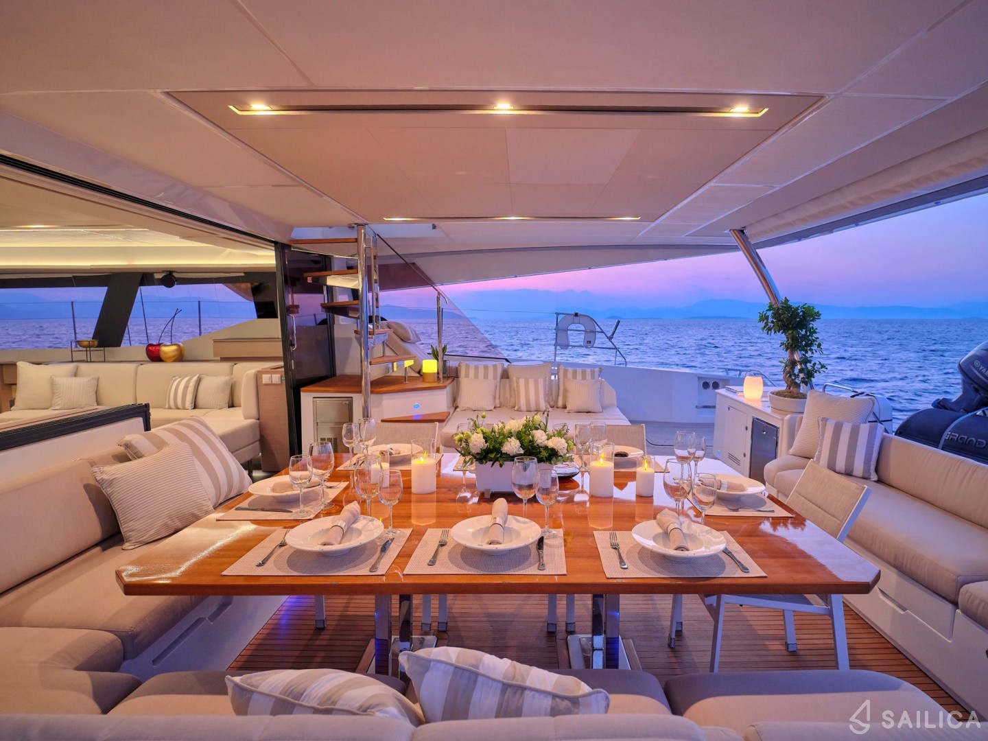 Alegria 67 ALEXANDRA II катамаран було виготовлено в 2022, і експлуатується чартерною компанією Fyly Yachting. Цей розкішний катамаран може з комфортом розмістити до 8 людей, на ньому є 4 каюти і 4 WC. Для вашої зручності Alegria 67 ALEXANDRA II оснащений Палубний душ, Рибальське спорядження, Плавальний майданчик, Стереосистема в салоні, Сонцезахисний тент і багатьом іншим.