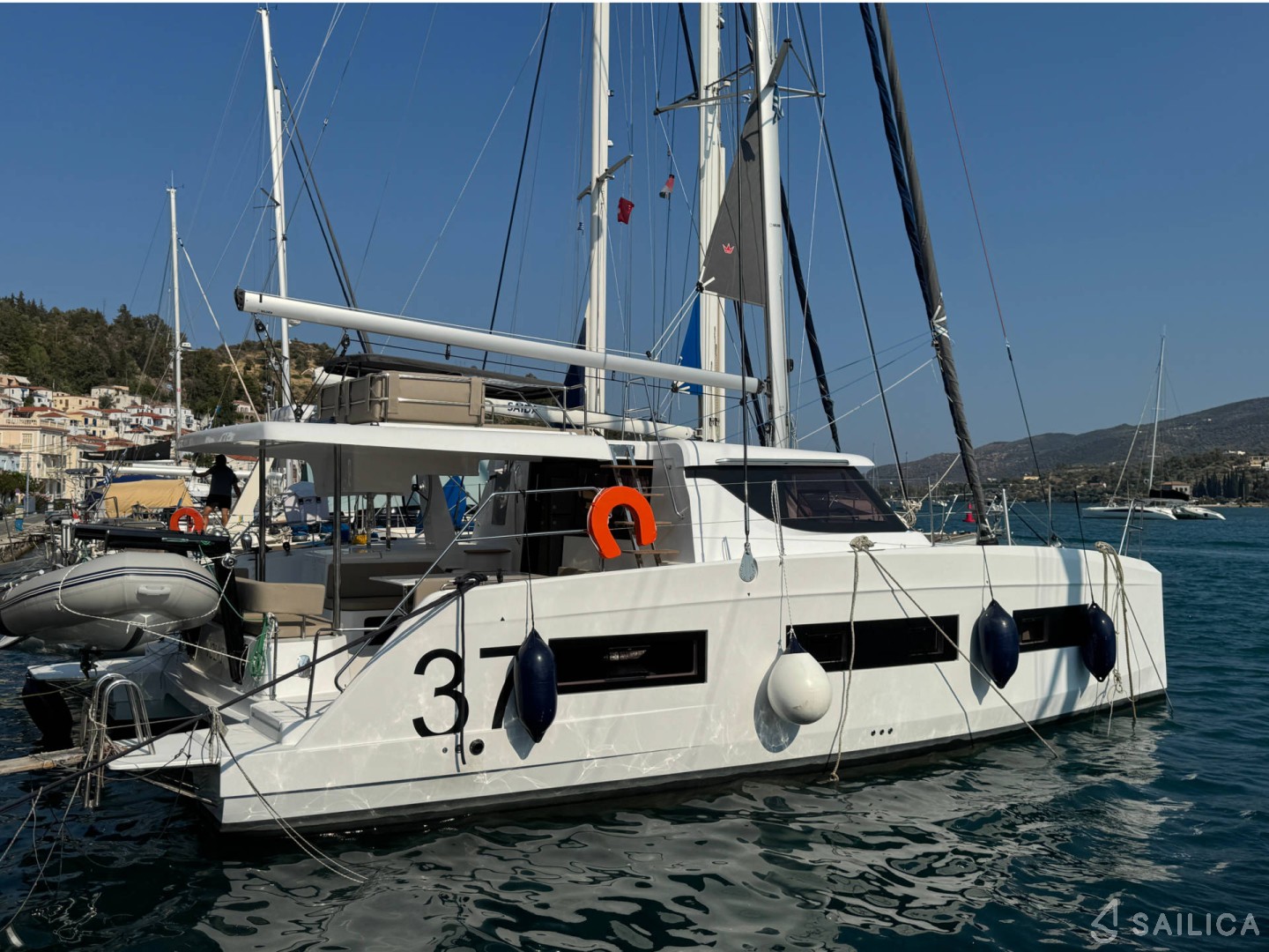 Катамаран Aventura 37 VOLKI пришвартований в прекрасній Марина Алімос, і важливо знати, що всі орендовані човни повинні бути повернуті в те ж місце, звідки вони були орендовані.