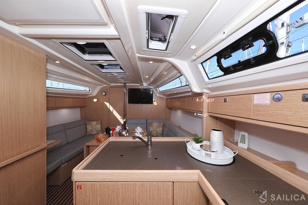 Для вашої зручності на цьому човні є Гаряча вода, Тиковий кокпіт, Лебідка., Геннакер., Палубний душ.