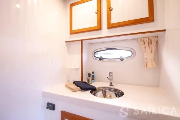 De Drait DeLuxe 42 Us Schipp має 3 каюти і може комфортно розмістити 6 осіб. Вона зручно обладнана 2 туалетом (вбиральнею), Плоттер діаграм, Радіо - програвач компакт-дисків, Носовий рушій, Холодильник і Опалення.