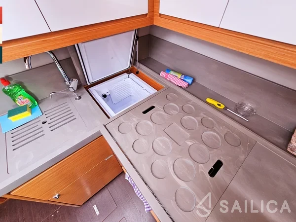 Для вашої зручності на цьому човні є Резервуар для зберігання, Кухонне обладнання, Духовий інструмент, Тиковий кокпіт, Винний льох.