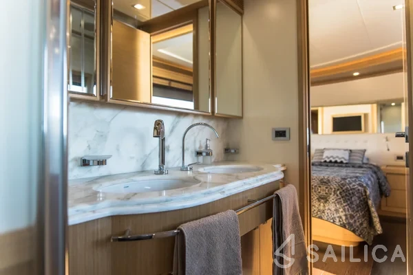 Ferretti 26 M Navetta Friend's boat має 4 каюти і може комфортно розмістити 8 осіб. Вона зручно обладнана 3 туалетом (вбиральнею), Розетки 220В, Посудомийна машина, Аптечка першої допомоги, Рятувальні жилети і Постільна білизна.