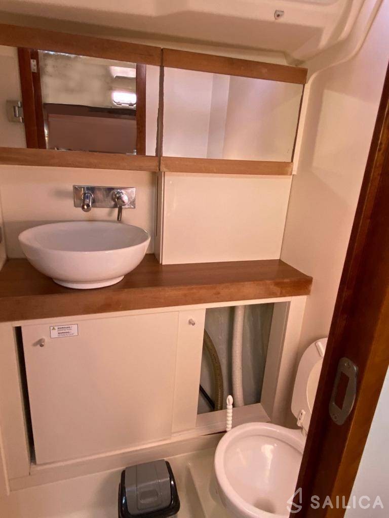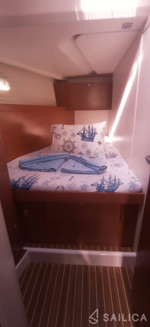 Для вашої зручності на цьому човні є Ледачий мішок, Гаряча вода, Засоби безпеки, Тиковий кокпіт, Палубний душ.