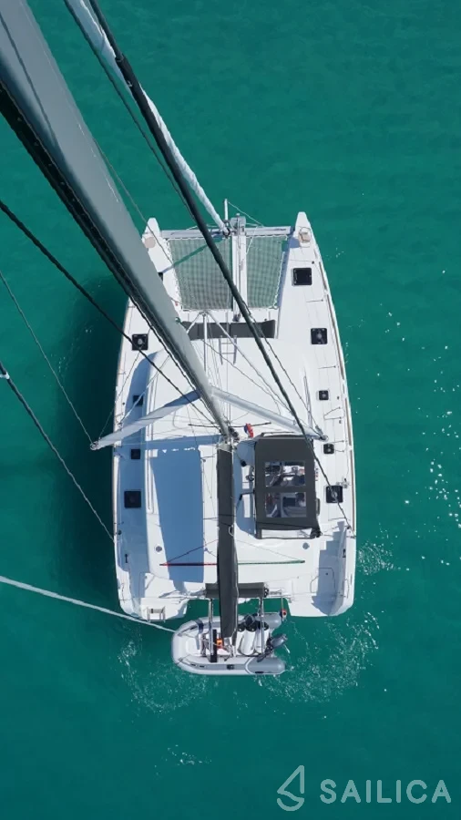 Lagoon 40 Infinity катамаран було виготовлено в 2019, і експлуатується чартерною компанією Matrix Yachting. Цей розкішний катамаран може з комфортом розмістити до 8 людей, на ньому є 4 каюти і 4 WC. Для вашої зручності Lagoon 40 Infinity оснащений Радар., Підключення до мережі 220 В, АІС, Радіо - програвач компакт-дисків, Аптечка першої допомоги і багатьом іншим.