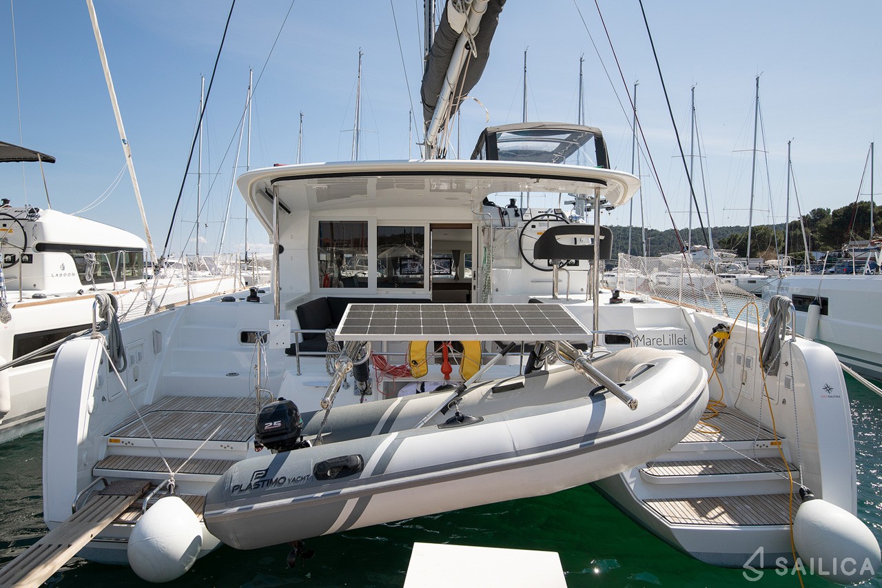 Lagoon 40 - 3 cab Mare Lillet катамаран було виготовлено в 2020, і експлуатується чартерною компанією Nautic Alliance. Цей розкішний катамаран може з комфортом розмістити до 10 людей, на ньому є 5 каюти і 2 WC. Для вашої зручності Lagoon 40 - 3 cab Mare Lillet оснащений Ледачий мішок, Платформа для купання, Тикова палуба, Трідата, Мікрохвильова піч і багатьом іншим.