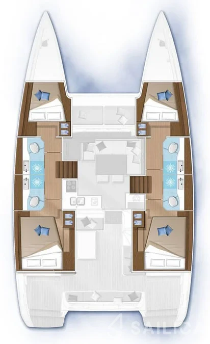 Lagoon 40 Blue Lagoon катамаран було виготовлено в 2021, і експлуатується чартерною компанією Q-Yacht. Цей розкішний катамаран може з комфортом розмістити до 12 людей, на ньому є 6 каюти і 4 WC. Для вашої зручності Lagoon 40 Blue Lagoon оснащений Трідата, Аварійний румпель, Аптечка першої допомоги, Рятувальні жилети, Бінокль і багатьом іншим.
