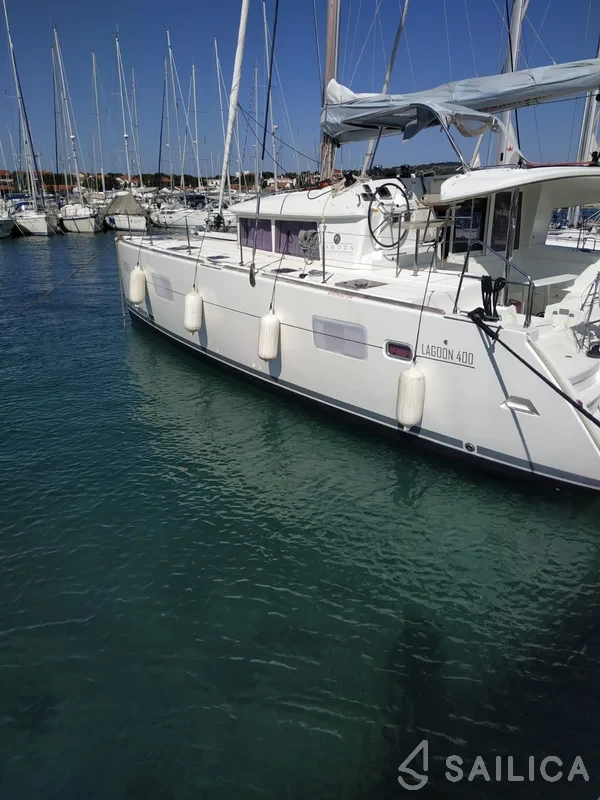 Lagoon 400 Atlantic катамаран було виготовлено в 2011, і експлуатується чартерною компанією VitoNautika. Цей розкішний катамаран може з комфортом розмістити до 12 людей, на ньому є 6 каюти і 4 WC. Для вашої зручності Lagoon 400 Atlantic оснащений Гаряча вода, Windex, EPIRB, Аптечка першої допомоги, Барометр і багатьом іншим.
