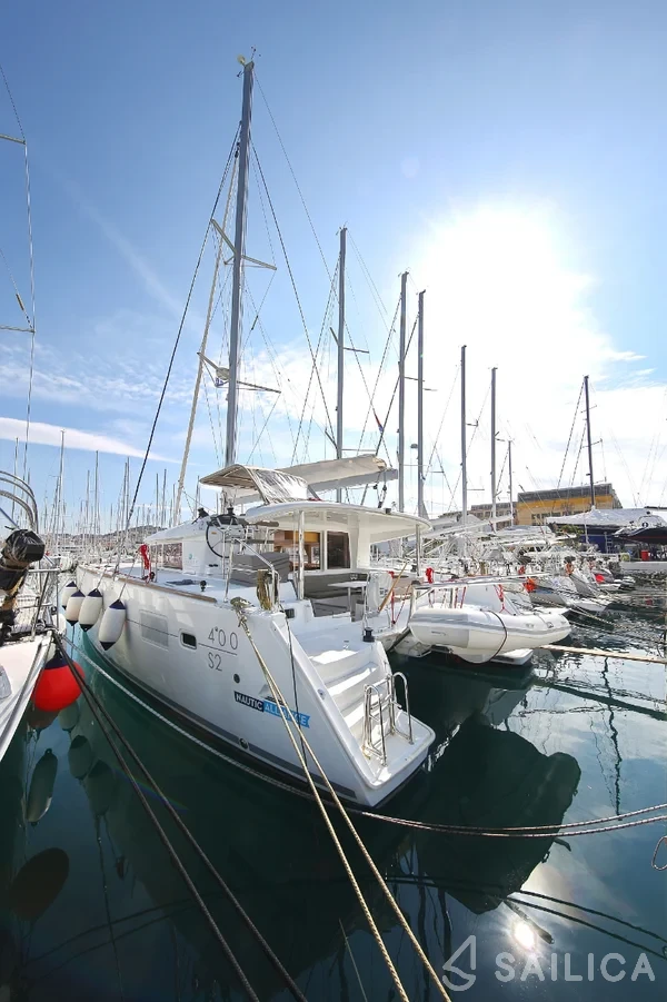 Lagoon 400 S2 Elea катамаран було виготовлено в 2014, і експлуатується чартерною компанією Nautic Alliance. Цей розкішний катамаран може з комфортом розмістити до 8 людей, на ньому є 4 каюти і 2 WC. Для вашої зручності Lagoon 400 S2 Elea оснащений Ледачий мішок, Платформа для купання, Трідата, Гаряча вода, Тиковий кокпіт і багатьом іншим.