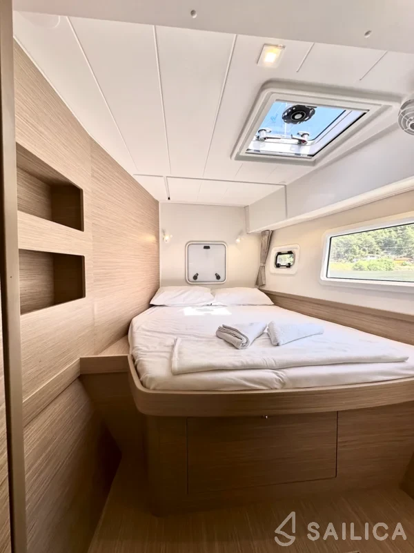 Lagoon 42 Sail Electra катамаран було виготовлено в 2023, і експлуатується чартерною компанією Sailfleet. Цей розкішний катамаран може з комфортом розмістити до 12 людей, на ньому є 6 каюти і 4 WC. Для вашої зручності Lagoon 42 Sail Electra оснащений Платформа для купання, Гаряча вода, Windex, Піч, Радіо - програвач компакт-дисків і багатьом іншим.