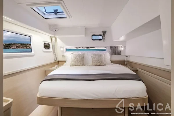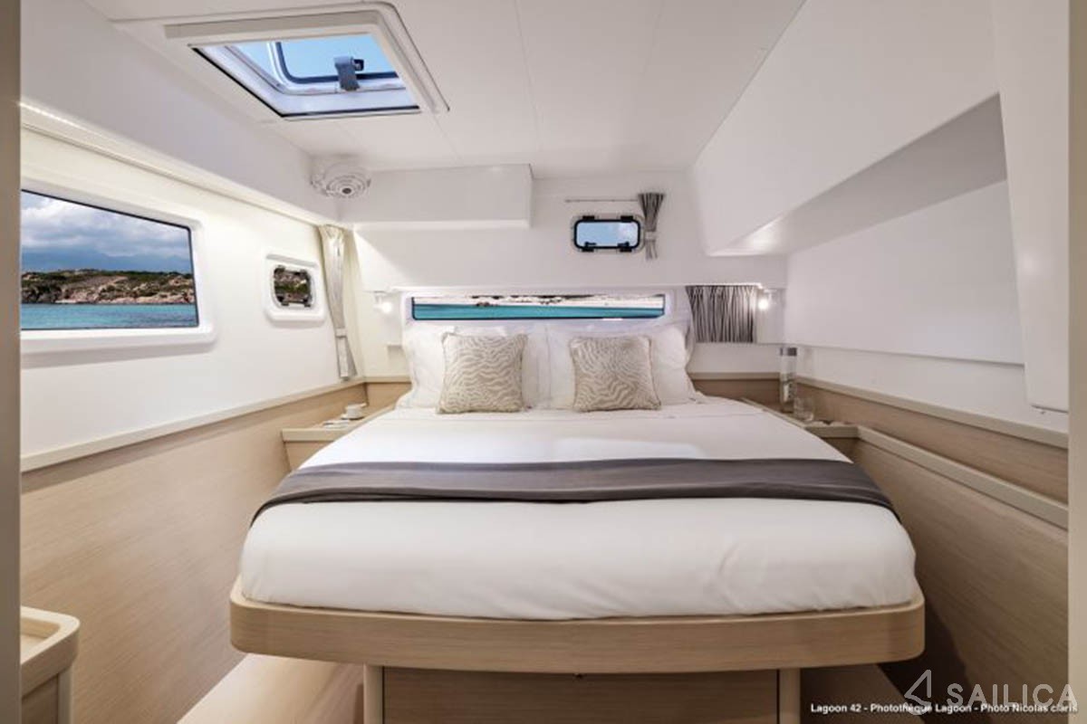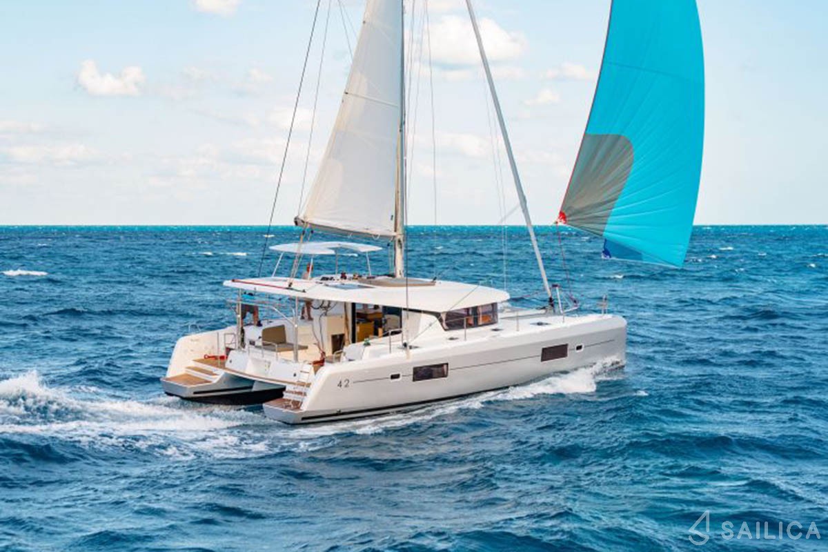 Lagoon 42 NORD катамаран було виготовлено в 2023, і експлуатується чартерною компанією Navigare Yachting. Цей розкішний катамаран може з комфортом розмістити до 10 людей, на ньому є 5 каюти і 4 WC. Для вашої зручності Lagoon 42 NORD оснащений Розетки 220В, Тикова палуба, Гаряча вода, Анемометр, Лебідка. і багатьом іншим.