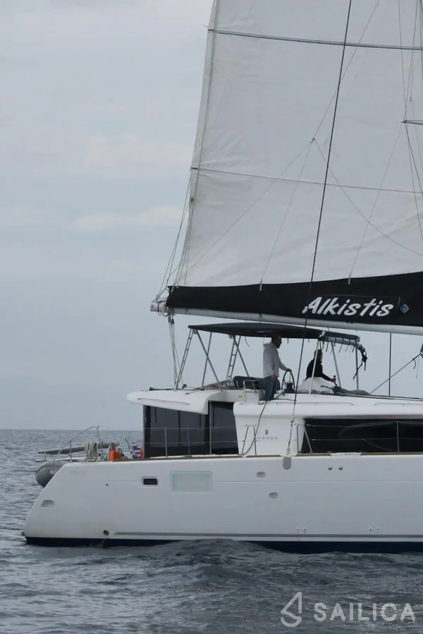Lagoon 450 Flybridge ALKISTIS катамаран було виготовлено в 2019, і експлуатується чартерною компанією Le Grand Bleu. Цей розкішний катамаран може з комфортом розмістити до 12 людей, на ньому є 6 каюти і 4 WC. Для вашої зручності Lagoon 450 Flybridge ALKISTIS оснащений Тикова палуба, Гідравлічний трап, Кавоварка, Електричний туалет, GPS-картплоттер в кабіні пілота і багатьом іншим.