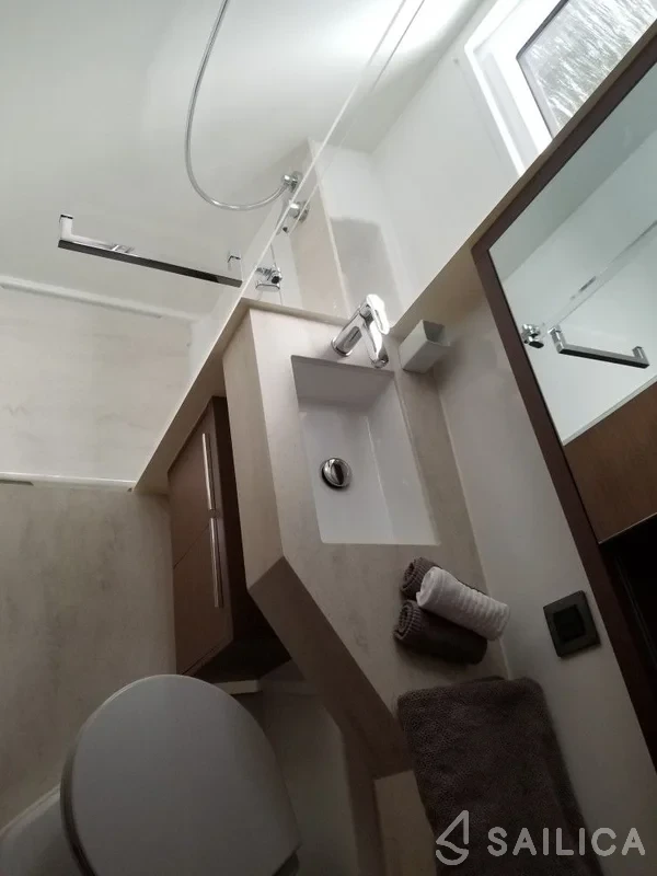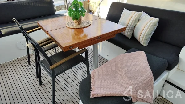 Lagoon 46 InnPro катамаран було виготовлено в 2020, і експлуатується чартерною компанією Lagoon-Charter. Цей розкішний катамаран може з комфортом розмістити до 8 людей, на ньому є 4 каюти і 4 WC. Для вашої зручності Lagoon 46 InnPro оснащений Тикова палуба, Мікрохвильова піч, Гаряча вода, АІС, Палубний душ і багатьом іншим.