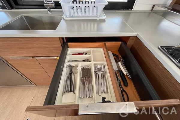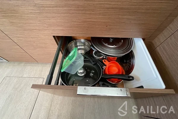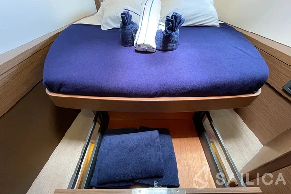 Lagoon 46 No Regrets катамаран було виготовлено в 2022, і експлуатується чартерною компанією Navigare Yachting. Цей розкішний катамаран може з комфортом розмістити до 12 людей, на ньому є 6 каюти і 4 WC. Для вашої зручності Lagoon 46 No Regrets оснащений Ледачий мішок, Розетки 220В, Станція ЦСК, Платформа для купання, Трідата і багатьом іншим.