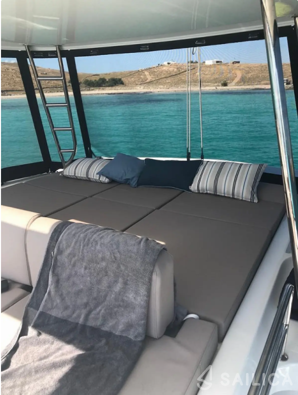 Lagoon 50 Sophia катамаран було виготовлено в 2020, і експлуатується чартерною компанією MG Yachts. Цей розкішний катамаран може з комфортом розмістити до 14 людей, на ньому є 7 каюти і 5 WC. Для вашої зручності Lagoon 50 Sophia оснащений Тикова палуба, Кавоварка, Кондиціонер, Топ біміні, Сонячні панелі і багатьом іншим.