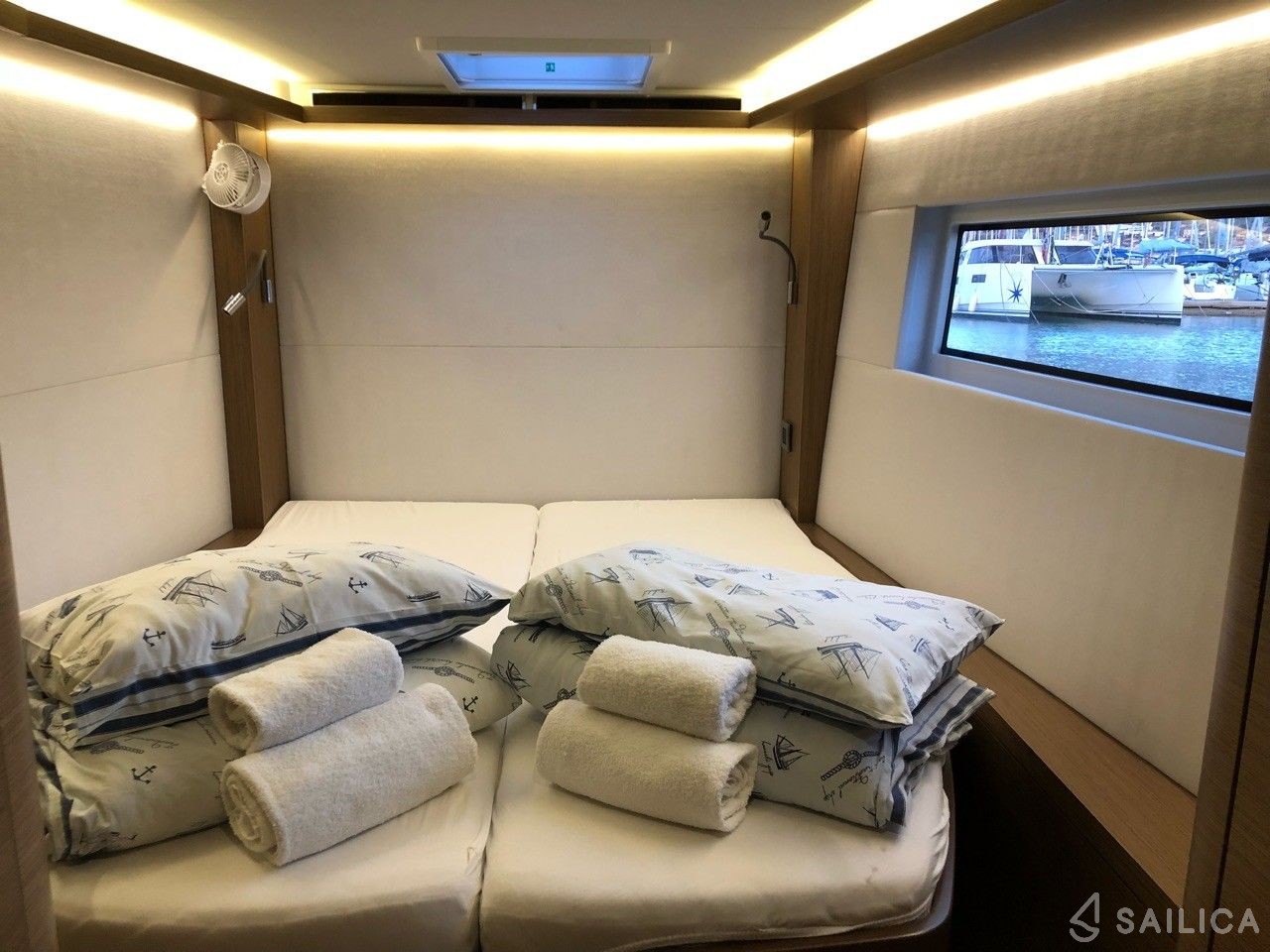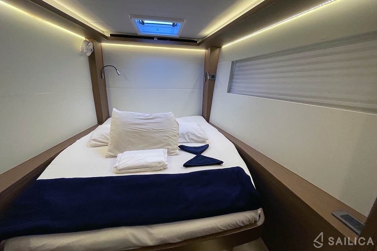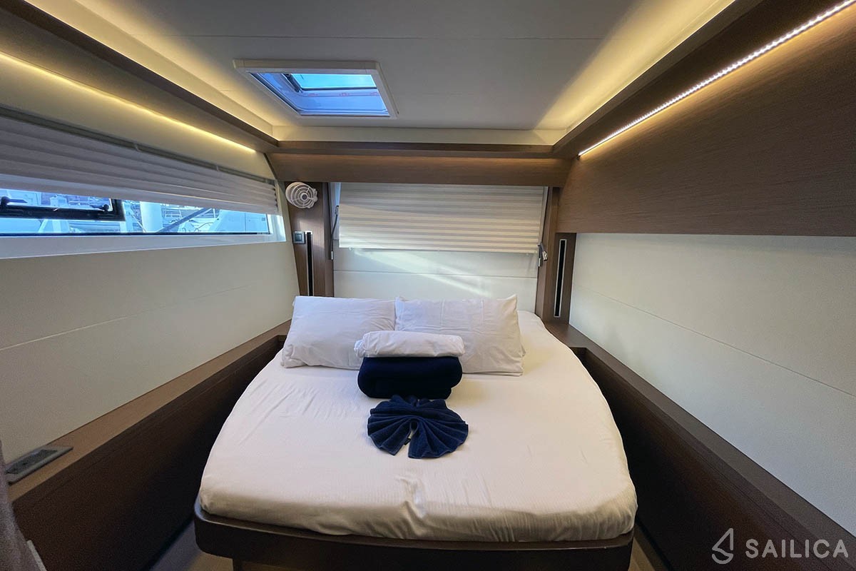 Lagoon 50 - 6 + 2 cab. Merev катамаран було виготовлено в 2018, і експлуатується чартерною компанією Navigare Yachting. Цей розкішний катамаран може з комфортом розмістити до 16 людей, на ньому є 8 каюти і 4 WC. Для вашої зручності Lagoon 50 - 6 + 2 cab. Merev оснащений Ледачий мішок, Станція ЦСК, Платформа для купання, Водонагрівач, Ящик для льоду і багатьом іншим.