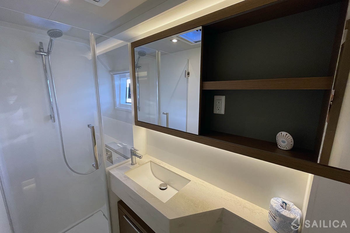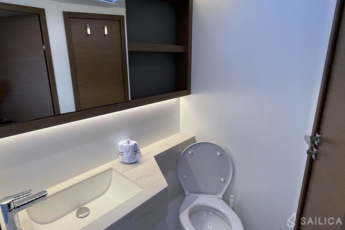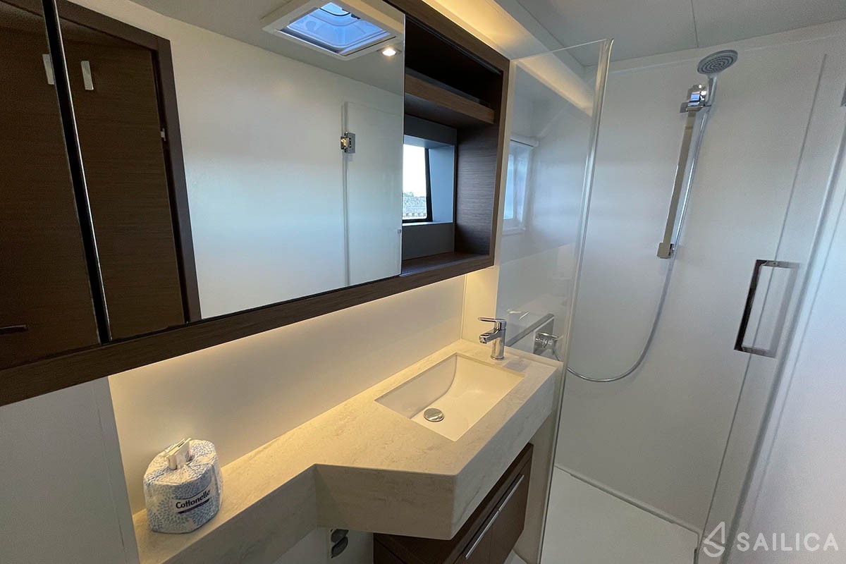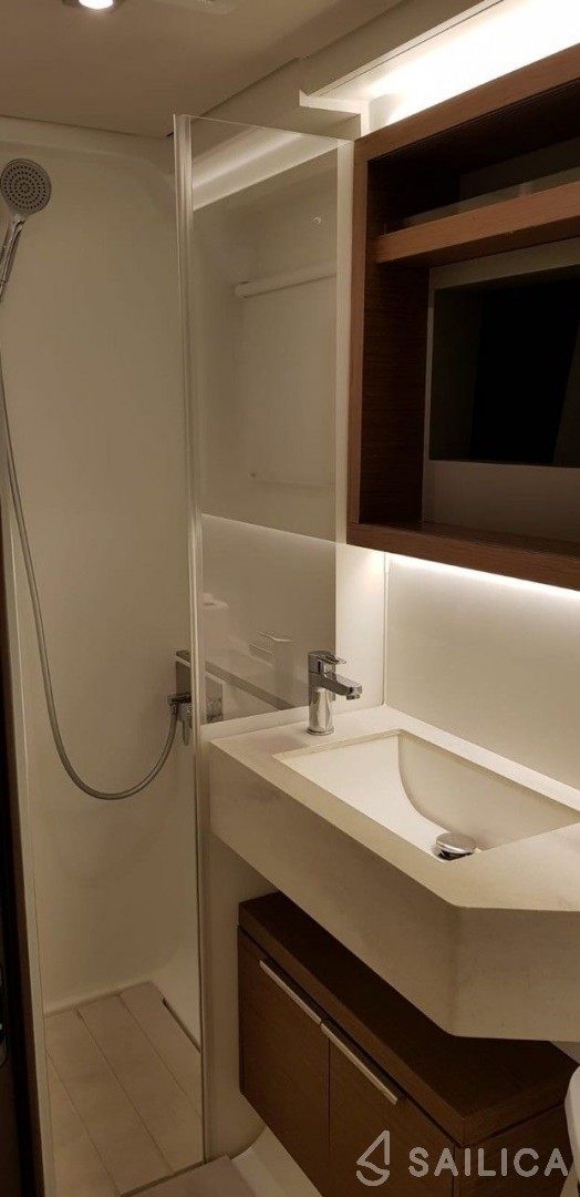 Lagoon 50 - 6 + 2 cab. Merev катамаран було виготовлено в 2018, і експлуатується чартерною компанією Navigare Yachting. Цей розкішний катамаран може з комфортом розмістити до 16 людей, на ньому є 8 каюти і 4 WC. Для вашої зручності Lagoon 50 - 6 + 2 cab. Merev оснащений Ледачий мішок, Станція ЦСК, Платформа для купання, Водонагрівач, Ящик для льоду і багатьом іншим.