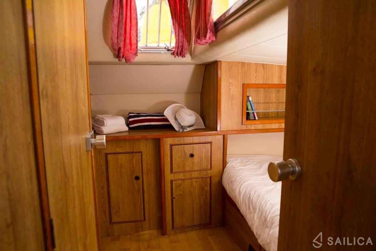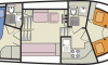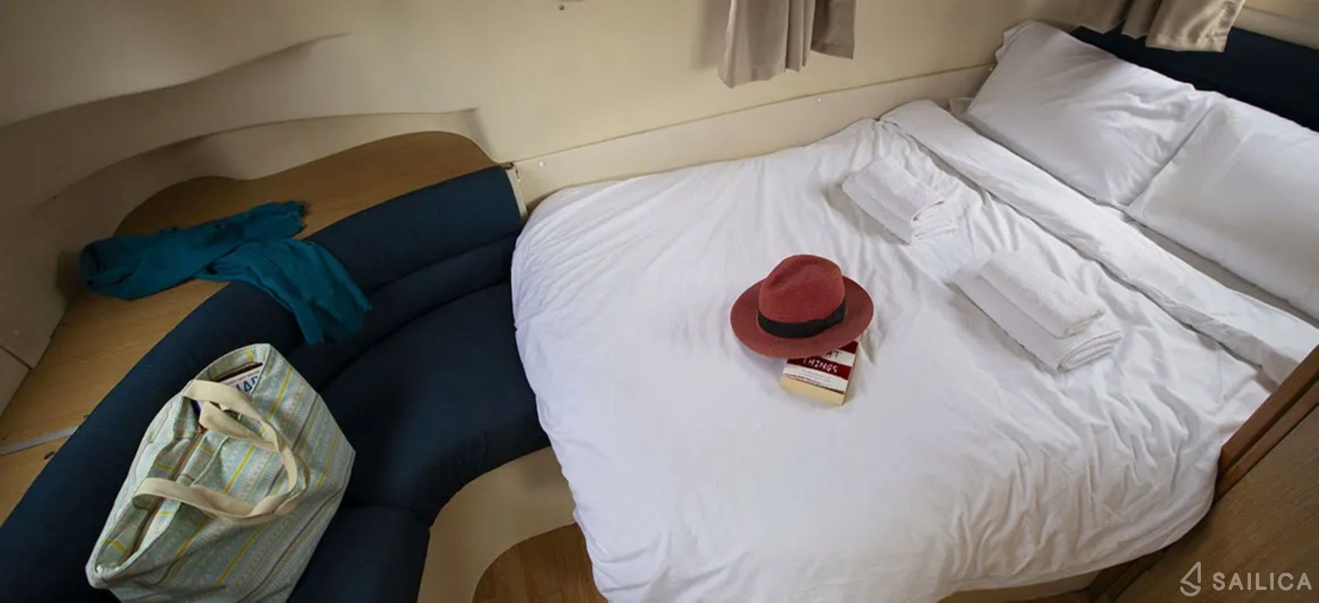 На цій яхті можуть комфортно розміститися до 4 гостей, на ній є 2 каюти, і 2 WC (туалет).