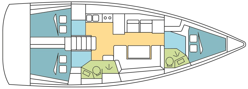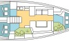 На цій яхті можуть комфортно розміститися до 6 гостей, на ній є 3 каюти , і 2 WC (туалет).