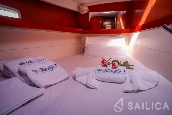 На цій яхті можуть комфортно розміститися до 8 гостей, на ній є 4 каюти , і 5 WC (туалет).
