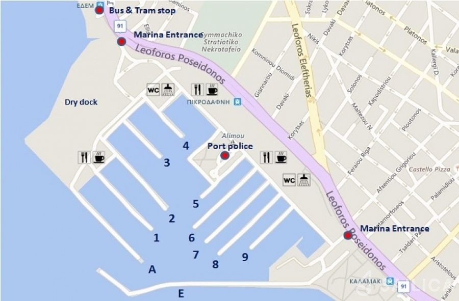 Катамаран Samana 59 Astoria пришвартований в прекрасній Марина Алімос, і важливо знати, що всі орендовані човни повинні бути повернуті в те ж місце, звідки вони були орендовані.