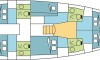 На цій яхті можуть комфортно розміститися до 14 гостей, на ній є 7 каюти , і 4 WC (туалет).