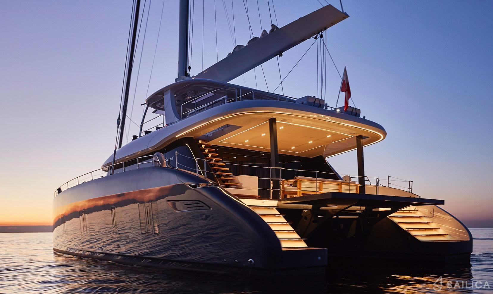 Sunreef 80 Genny катамаран було виготовлено в 2020, і експлуатується чартерною компанією Fyly Yachting. Цей розкішний катамаран може з комфортом розмістити до 10 людей, на ньому є 5 каюти і 5 WC. Для вашої зручності Sunreef 80 Genny оснащений Палубний душ, Рибальське спорядження, Плавальний майданчик, Стереосистема в салоні, Сонцезахисний тент і багатьом іншим.