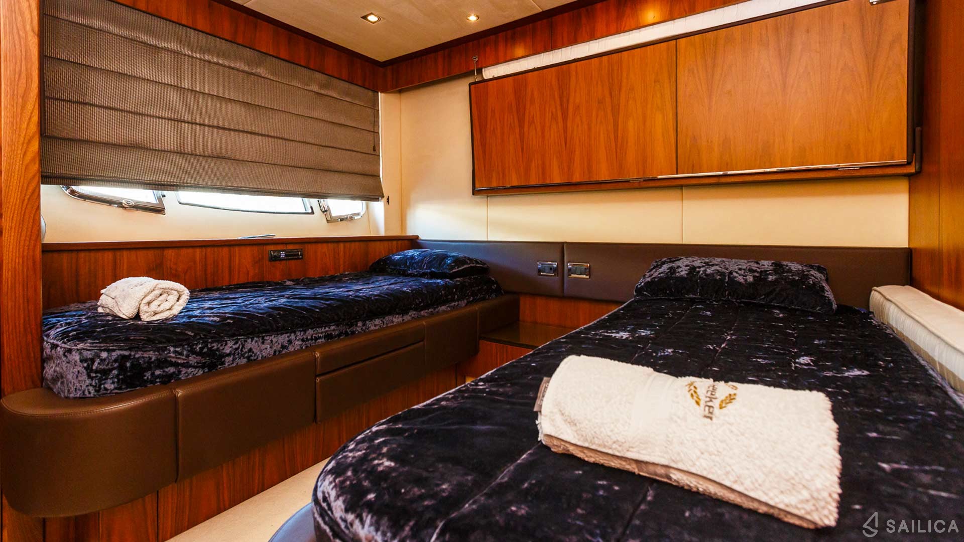 Sunseeker 86 The Best Way має 4 каюти і може комфортно розмістити 8 осіб. Вона зручно обладнана 4 туалетом (вбиральнею), Водний мотоцикл, Посадкова драбина, WIFI, Водні лижі і Вейкборд.