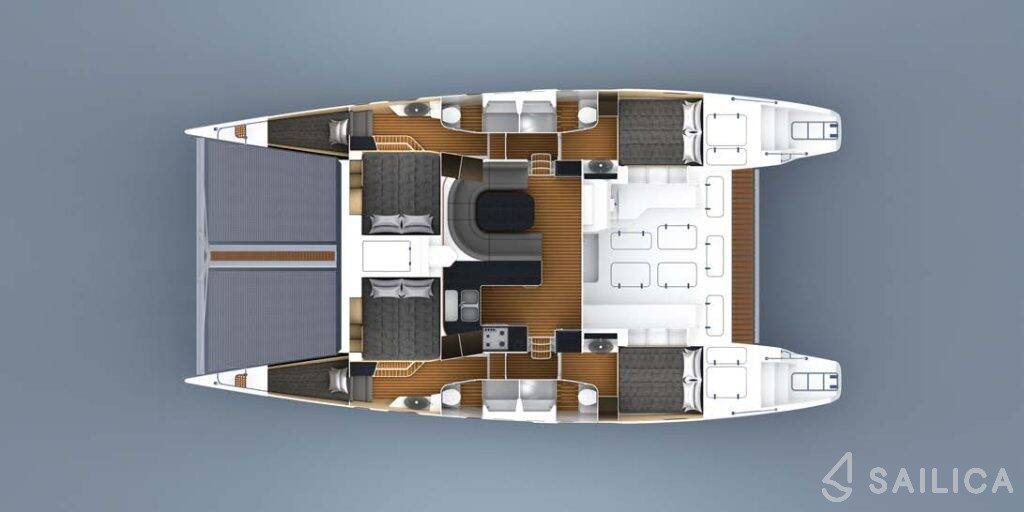 Voyage 480 Mucho Gusto катамаран — це ваш ідеальний вибір катамарану для прийому гостей, риболовлі, плавання, підводного плавання або чогось іншого, що приготувала для вас ваша пригода!